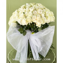 101 white long-stemmed roses bouquet wrapped in pure white paper. This bouquet is good to send to your angle. The color of roses and paper can be changed according to customer requirements.